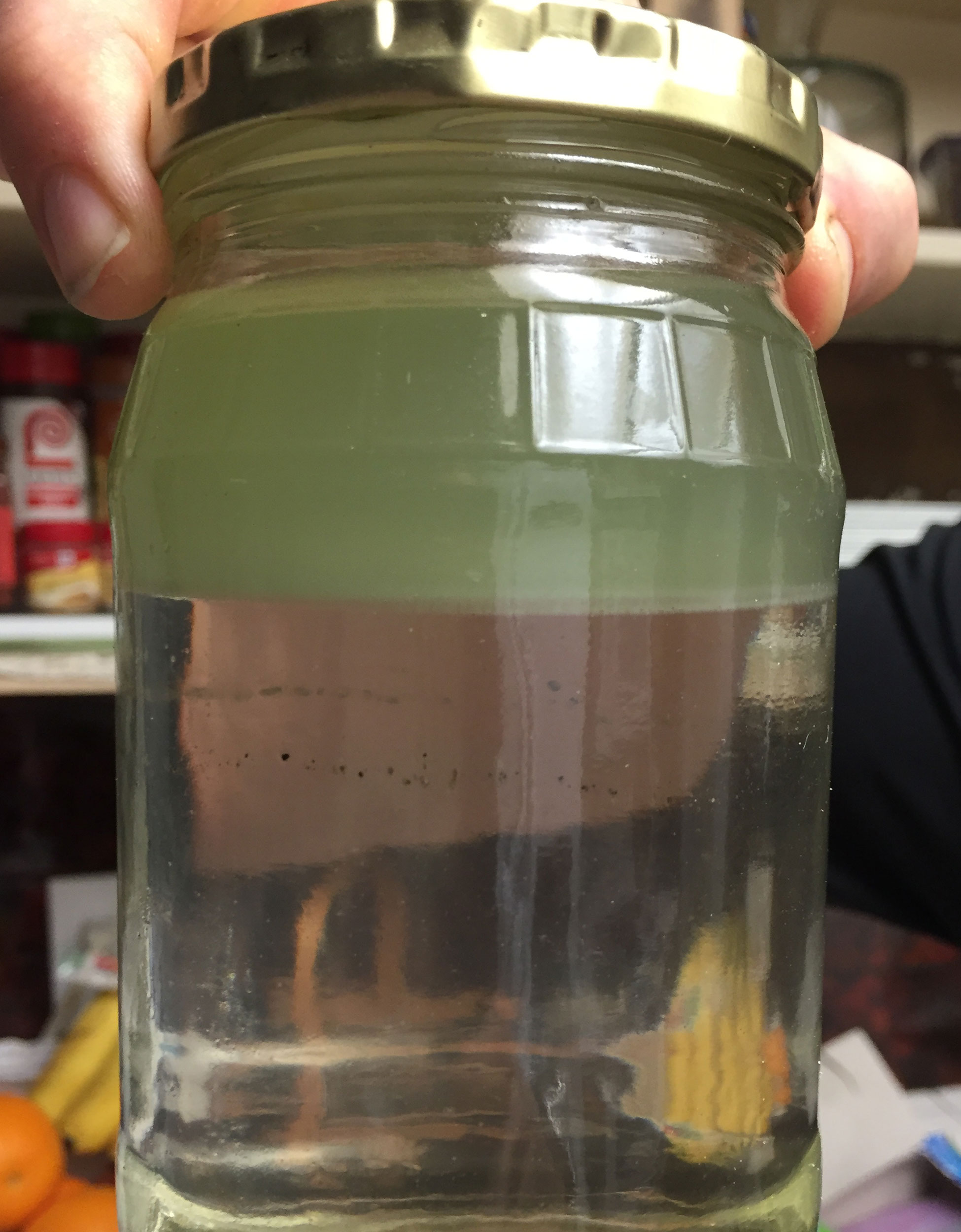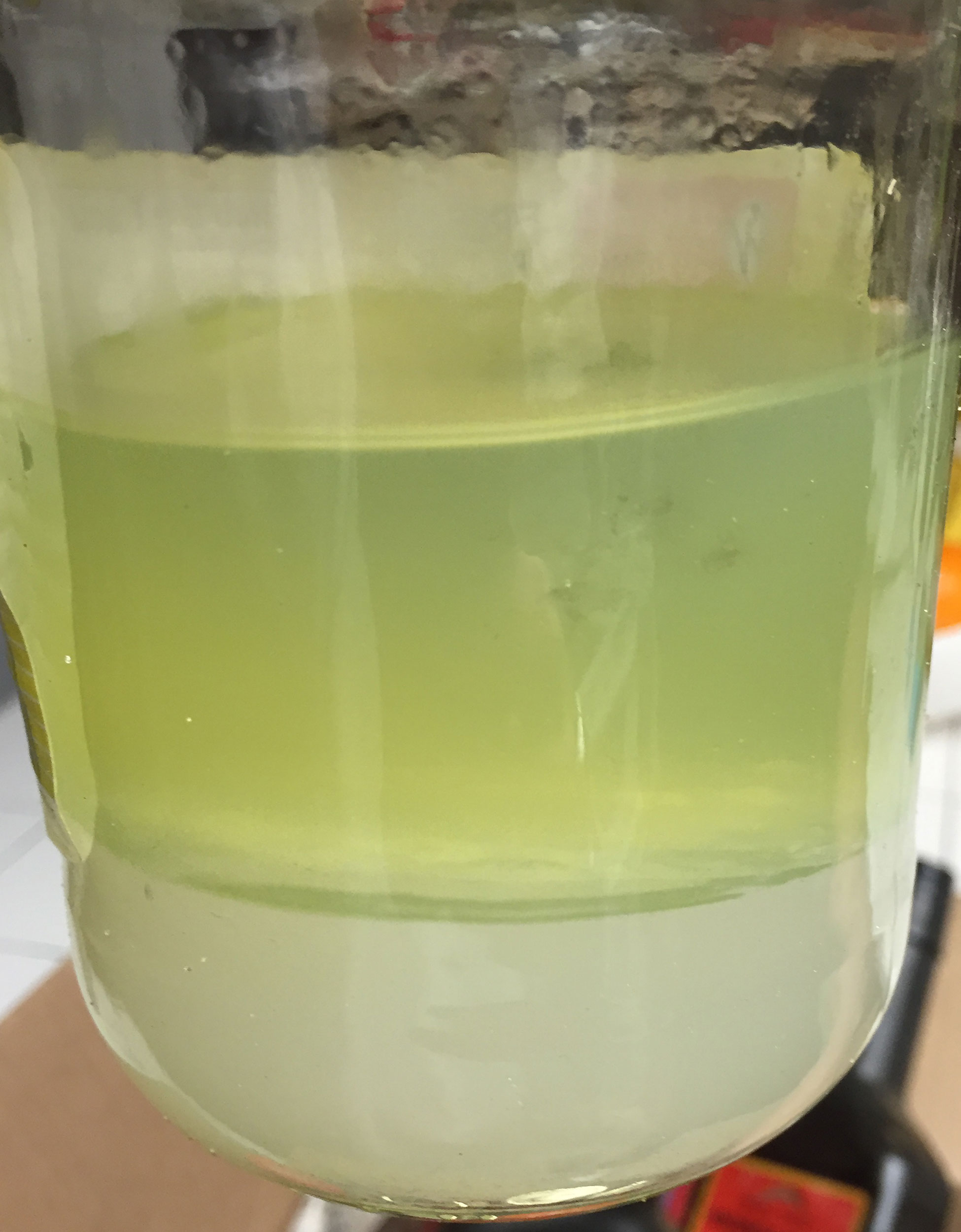 You can clearly see the phase separation with the ethanol-water blend settled on the bottom.